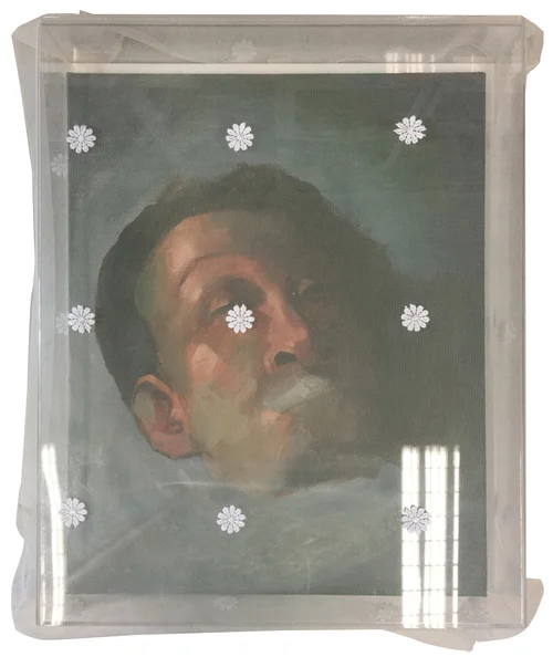 41.5 x 50.5 cm, Oil on Linen, 43 x 54 x 8.5 cm (Acrylic box), Lace veil